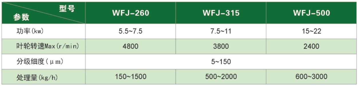 ③ 本机结构先进,分级可靠,产品粒度分布范围窄,效率高,能耗低、经久耐用。