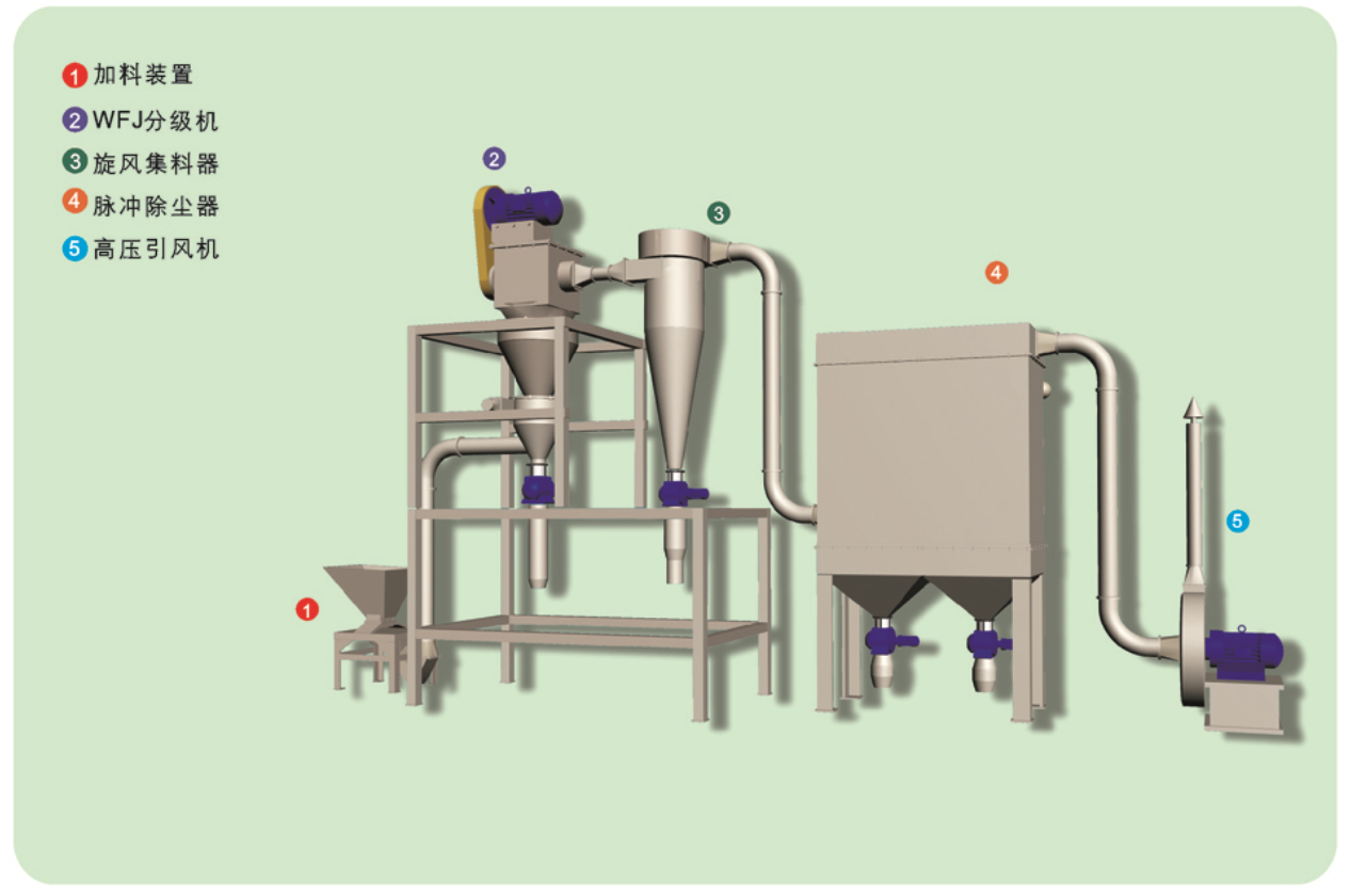 ④ 可与各种机械式粉碎机或气流粉碎机组成闭回路系统,也可单独进行物料分级处理。