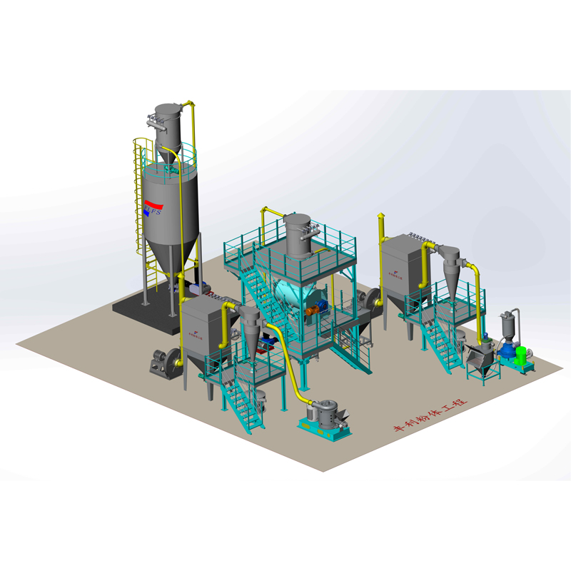 粉碎转子由若干个水平圆盘和垂直刀片组成,形成许多交错排列的粉碎小室,小室内空气具有弹性。由于气流的冲击,使转子上的粉碎室产生微小振动。由此室内发出140分贝的可听声波的超声波,并在局部发生0.025大气压的压力差,从而产生到音速的喷流和涡流,能促使物料之间的相互摩擦、撞击而变成微粉,本机特殊设计的转子配有两个风机,可产生高速气流的下风机主要供吸料及予加速物料之用,上风机则是对外输送物料的主要风机,转子上有多层可变换高速刀片的刀架,定子上镶有锯齿型的衬里,机身上方还装有溢流管,不合格的颗粒还可通过分级棒的分级后返回进料口,重新进行粉碎。
